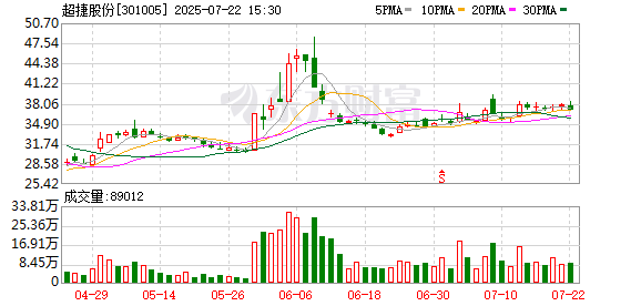 证券时报·数据宝统计显示,超捷股份今日收盘价为37.00元,下跌2.32%,日换手率为6.72%,成交额为3.34亿元,全天主力资金净流出3372.69万元,近5日该股累计下跌1.07%,近5日资金合计净流出2545.39万元。